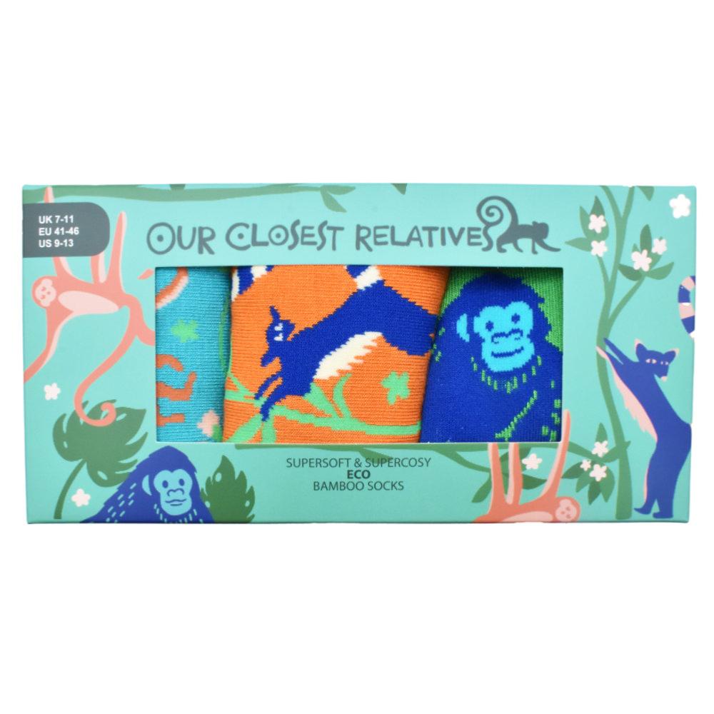 3 Pairs Bamboo Socks Our Closest Relatives UK 7-11 Mens