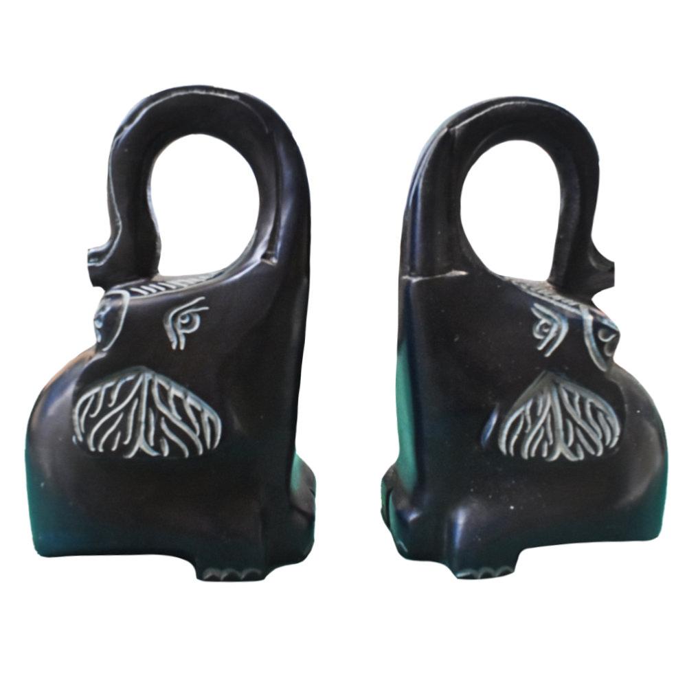 These beautifully hand carved soapstone bookends will enhance your bookcase or shelf. Each is in the shape of a elephant, carved with great attention to detail.