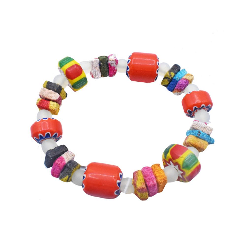 Bracelet Ceramic Handpainted Assorted Shapes Red + Multi