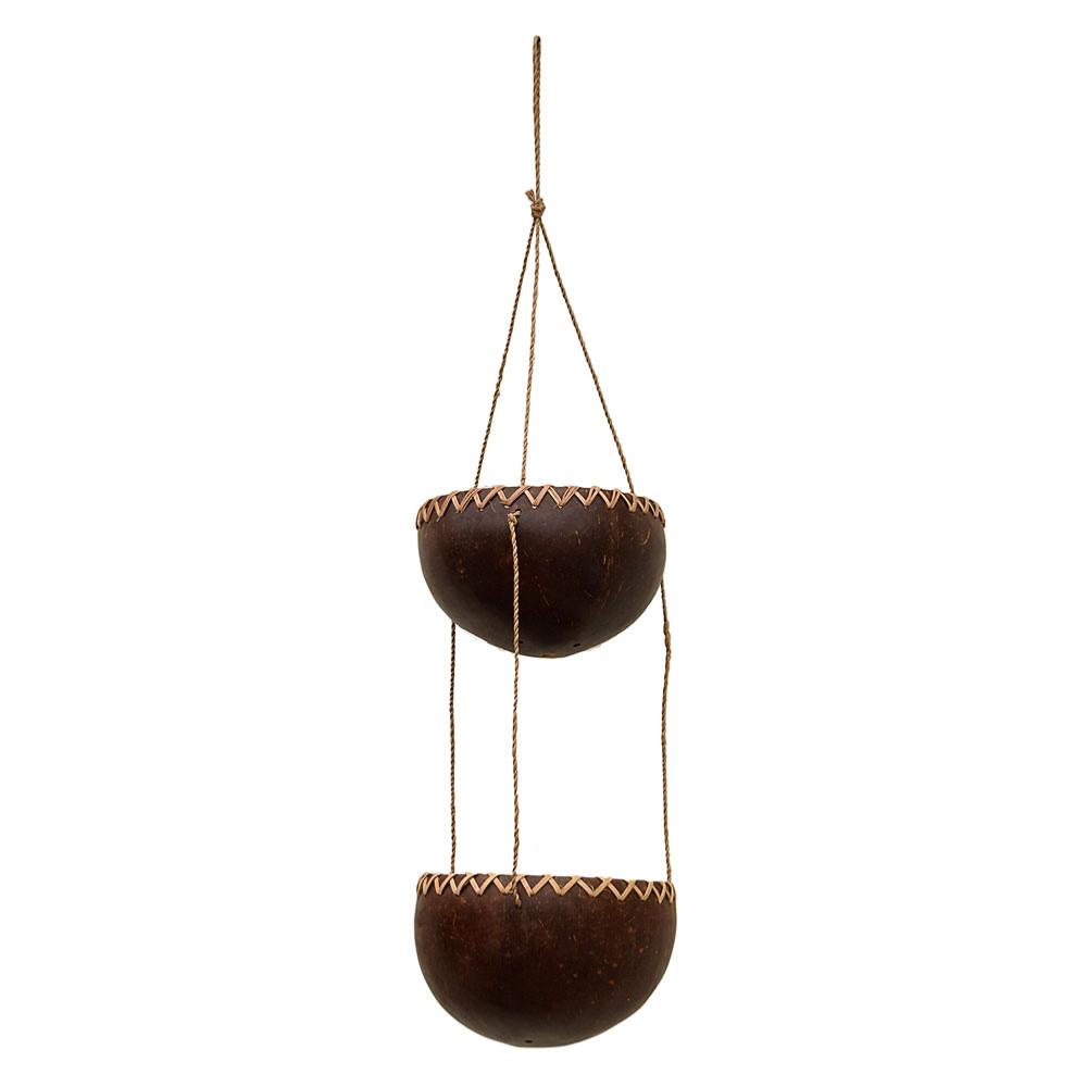 Coconut planter/light holder 2-tier natural