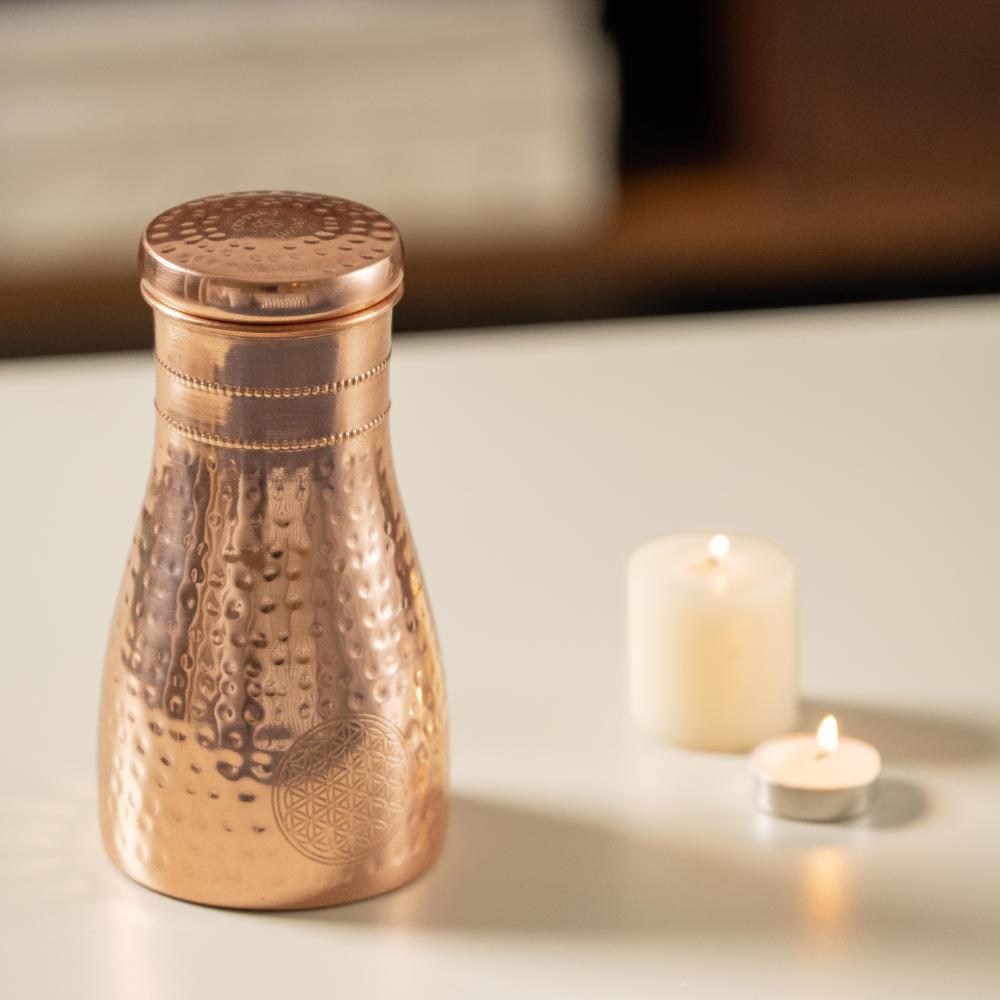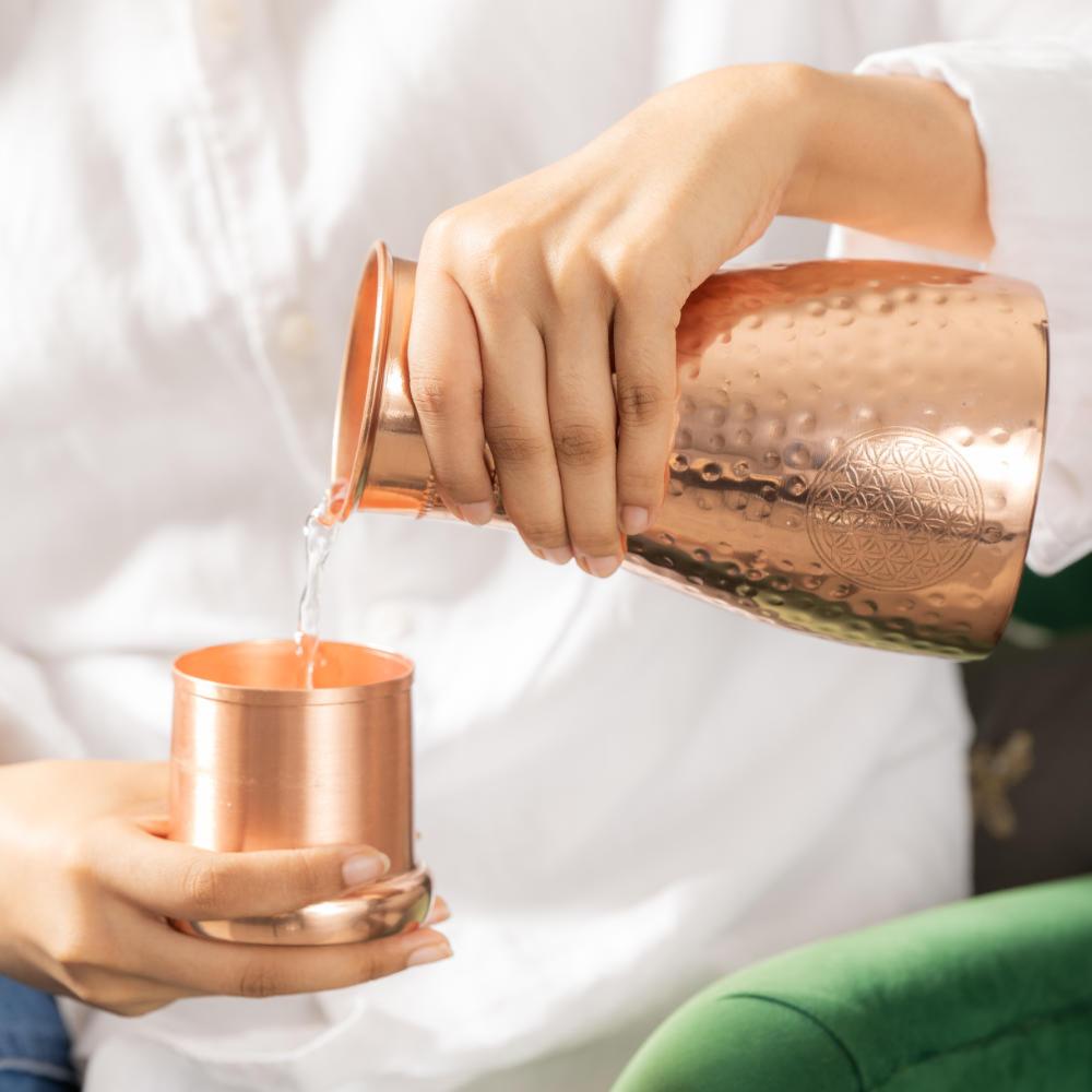 Ayurvedic teachings show that copper can be used as an antibacterial, anti-inflammatory water container that neutralises the pH of the body and has many health benefits such as boosted immunity, improved digestion, as well as reducing acid reflux and the risk of waterborne illness.