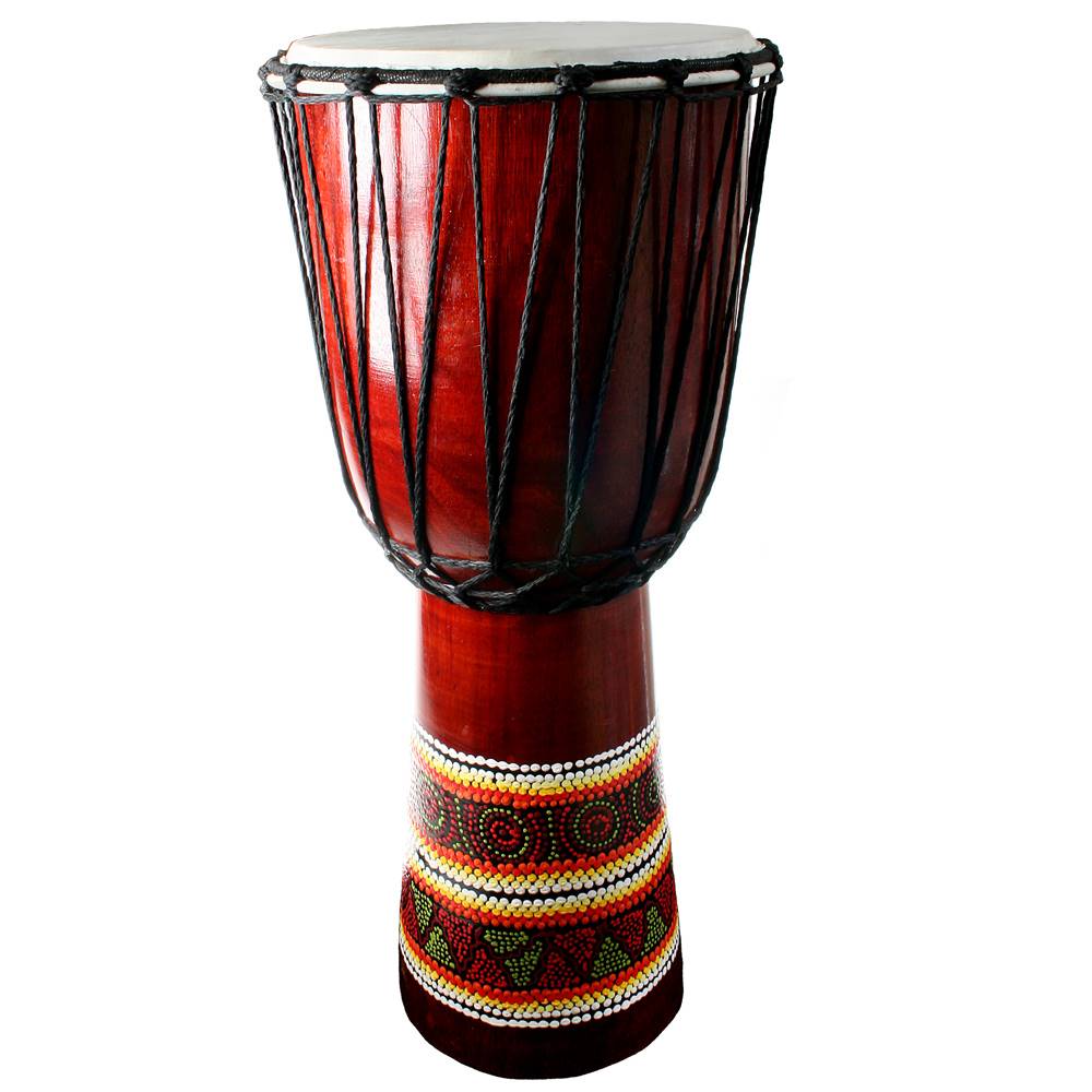 Our Djembe drums are handmade in Bali to this original African design whilst incorporating the vibrant dot design art that is so well known from the aboriginal cultures of Australia.