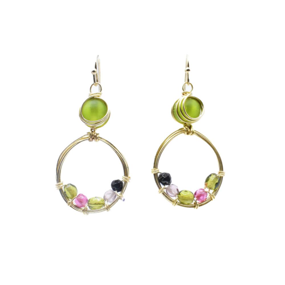 Earrings Green Stone + 5 Smaller Stones