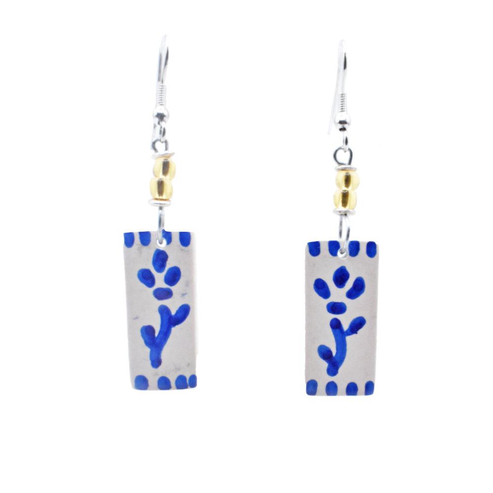 • Earrings Kisii Stone Rectangle with Blue Flower