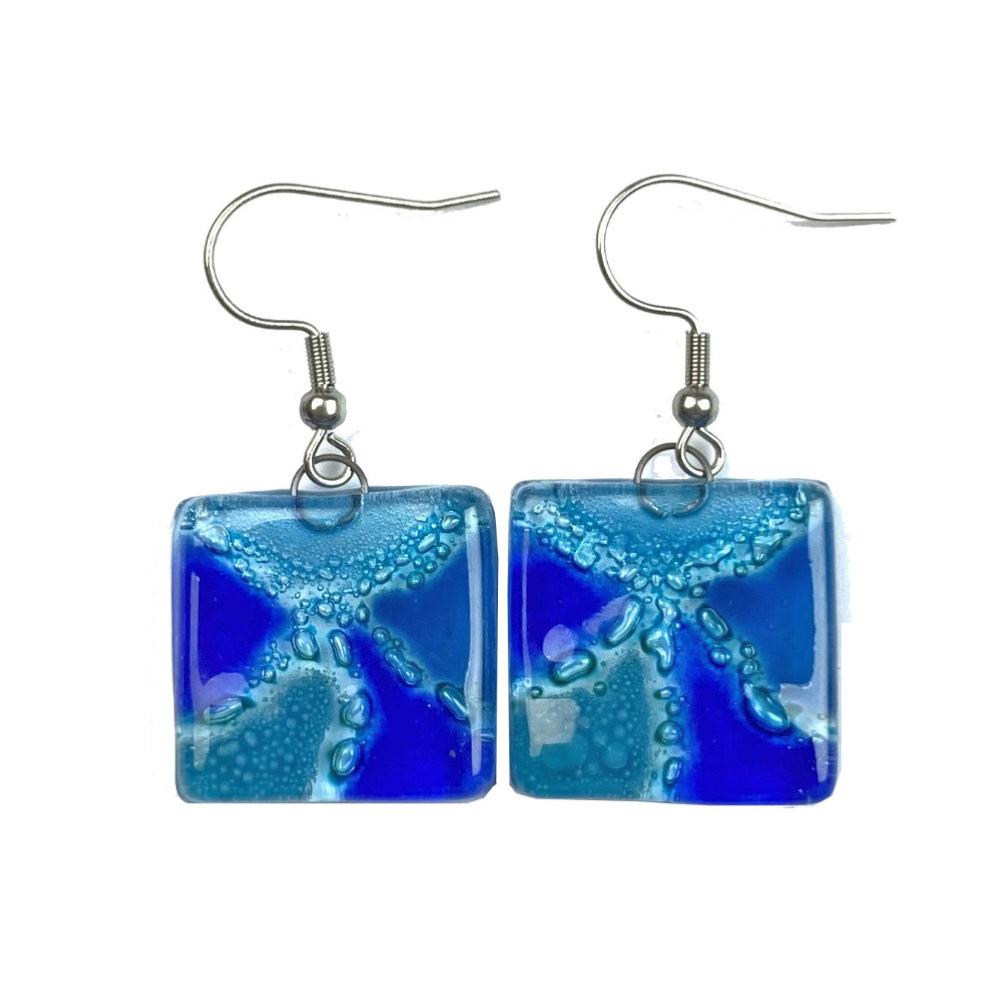 Earrings Recycled Glass Square Blues 2 x 2cm