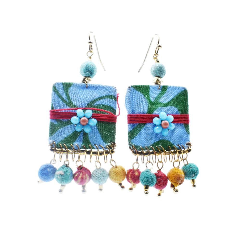 Earrings Square with 5 Drop Recycled Beads