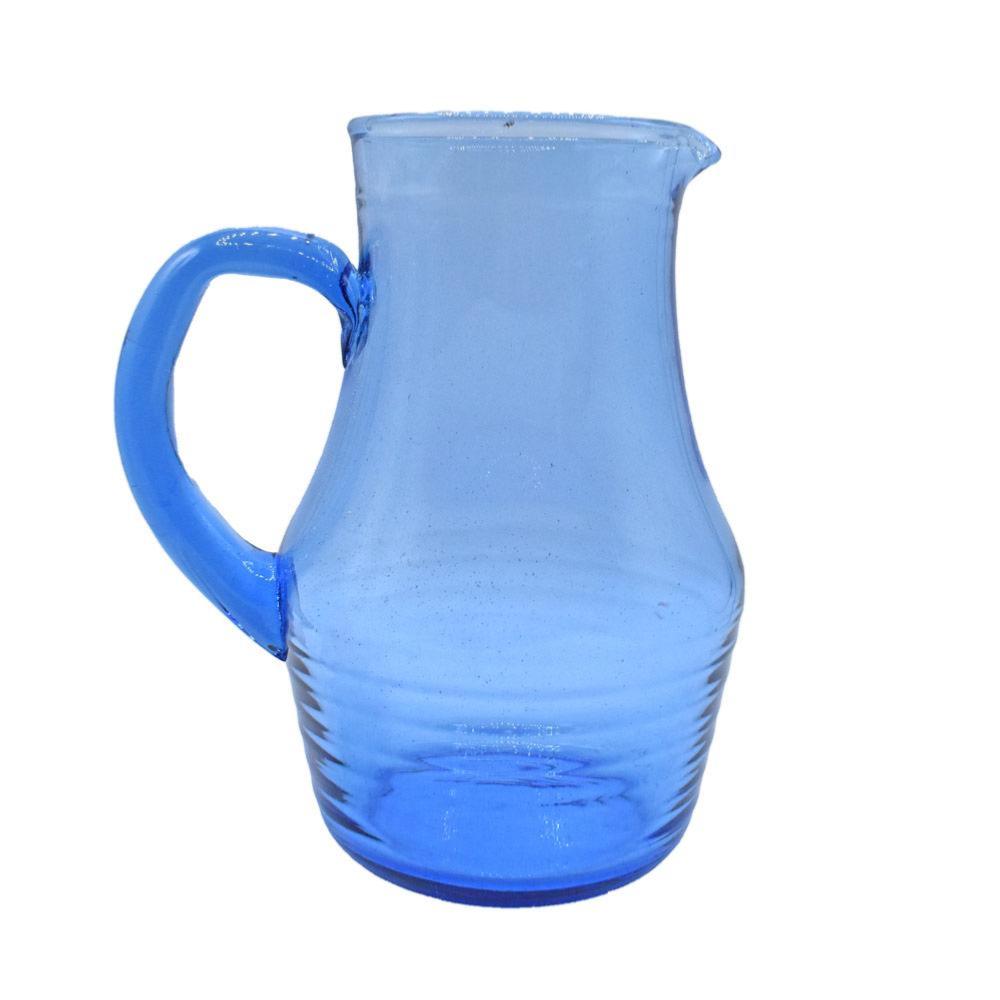 Jug made from blue tinted recycled glass