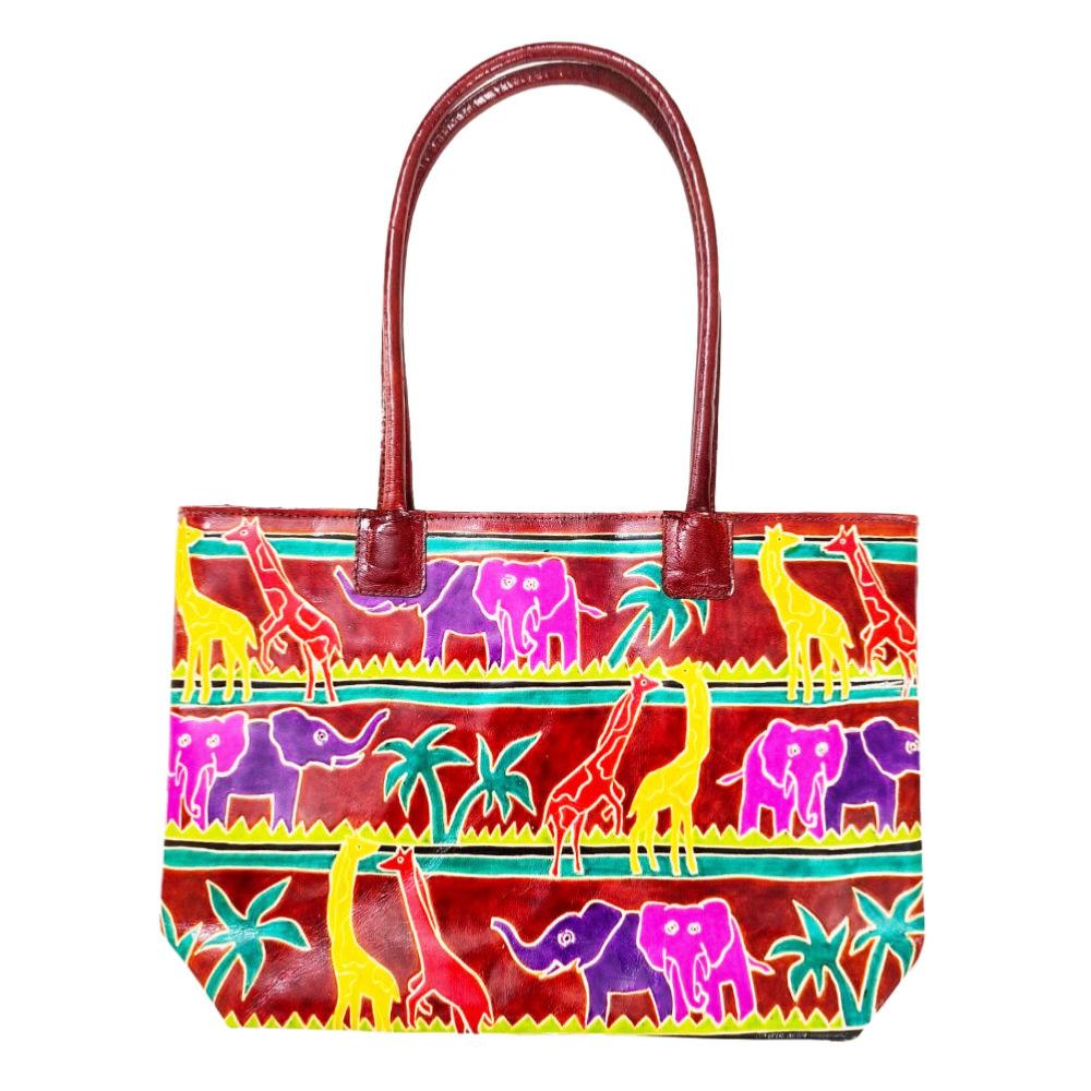 Leather Handbag Elephants and Giraffes 37.5 x 25cm