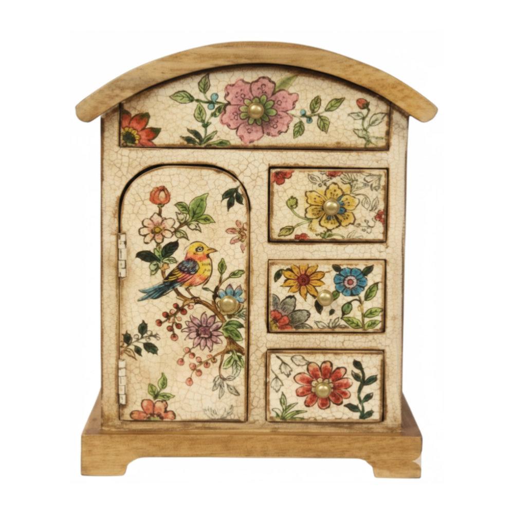 Mini Chest Mango Wood 1 Door + 4 Drawers Garden 20x13x26cm