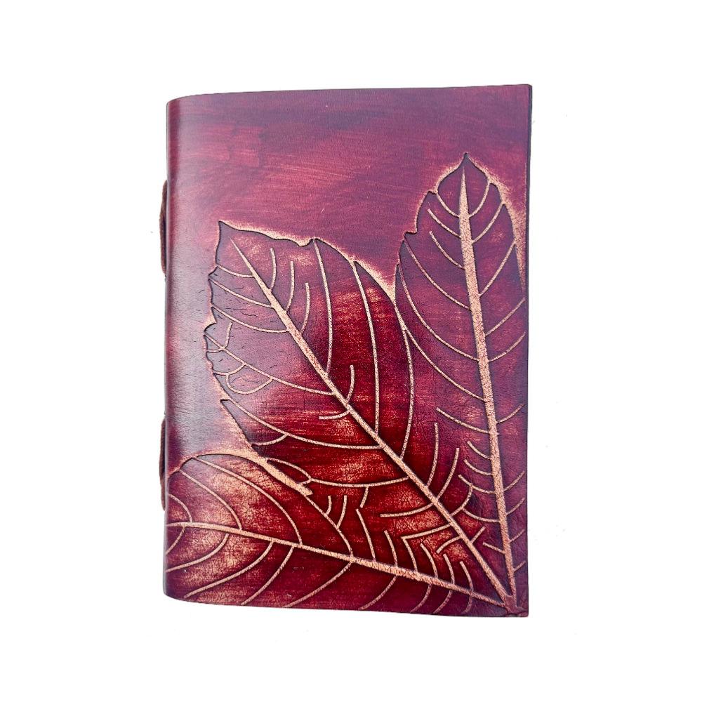 Notebook Recycled Paper Leaves Red 13 x 18cm