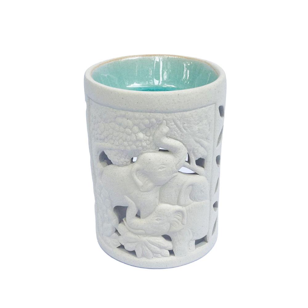 Oil Burner Glazed Cut Out Design Elephant Herd