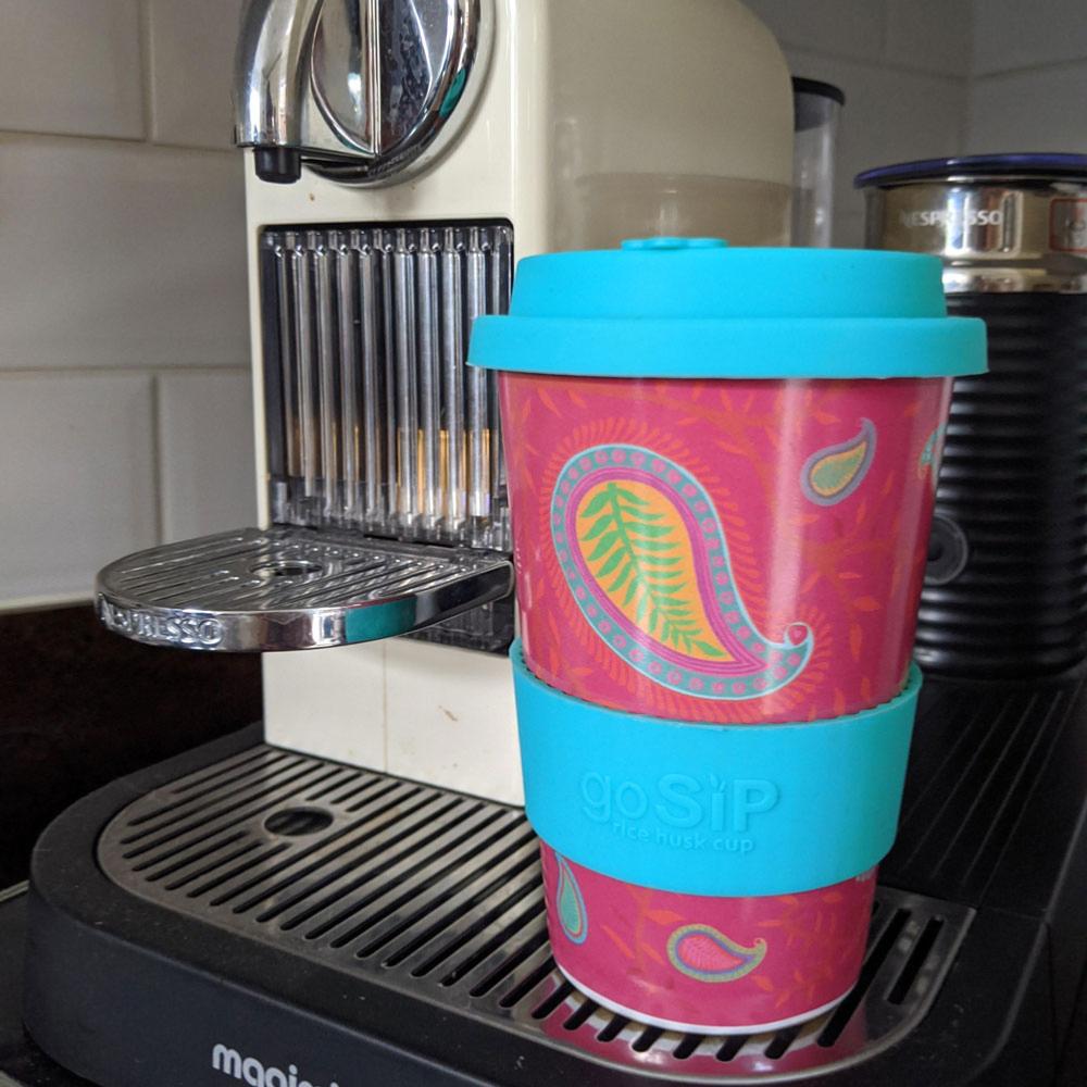 Reusable travel cup, biodegradable, paisley massala