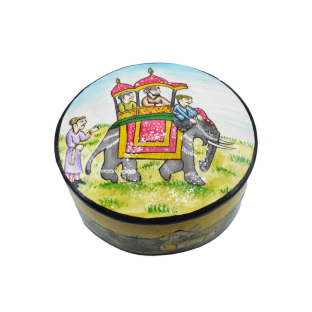Round Trinket Box Elephant with Courtiers Papier Mâché 11cm