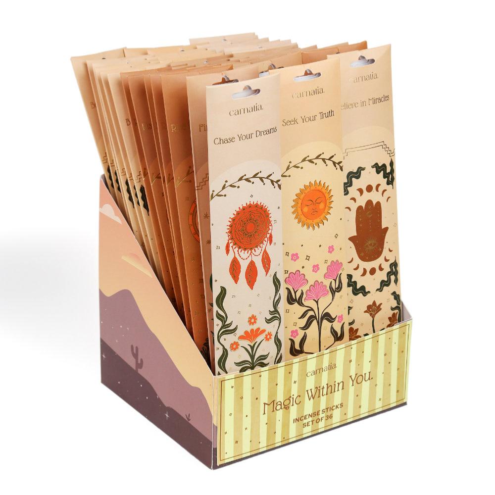 Set of 72 Packs Incense Sticks Carnatia in Display Unit