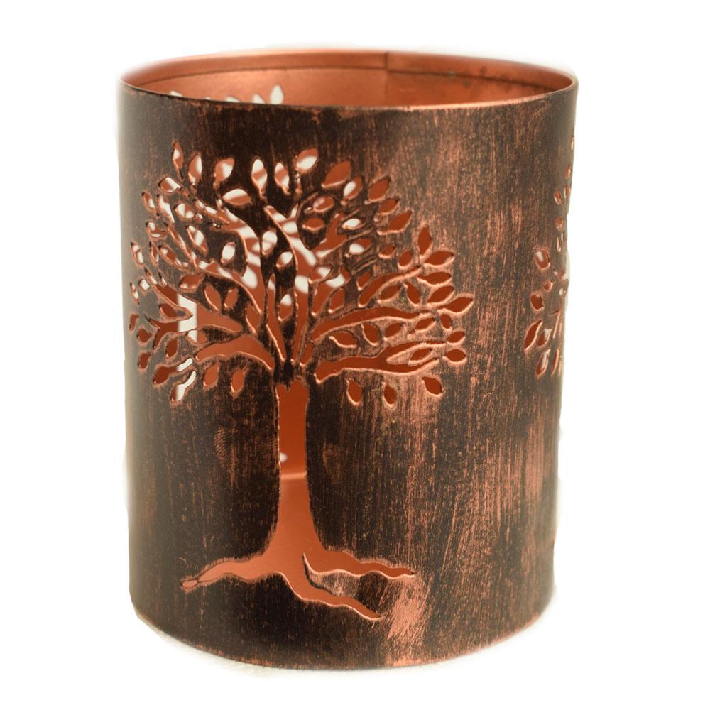 Die cut metal tea light holder, perfect for creating warm mood lighting and projects delicate shadows on the walls.