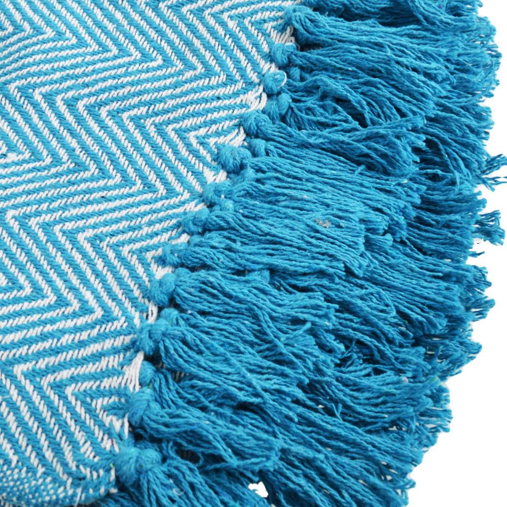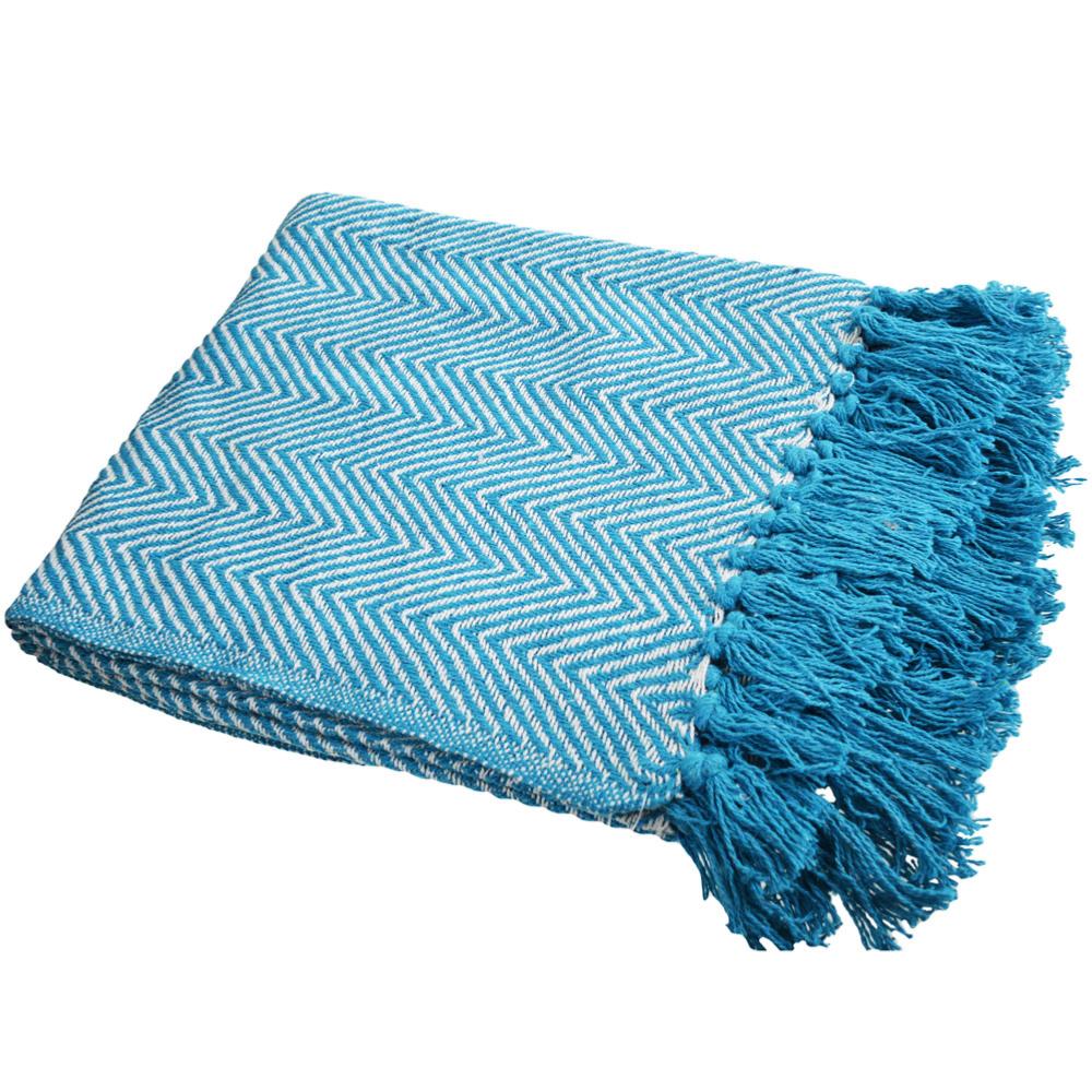 Throw/Bedspread Soft Recycled Material Chevron Design Turquoise 150x125cm